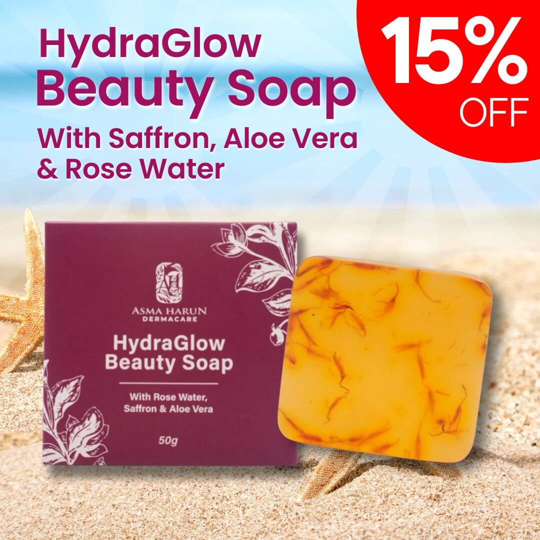 HydraGlow Soap ni gabungan saffron, rose water & aloe vera sangat membantu cerahkan kulit, hilang bintik hitam & lembutkan kulit,